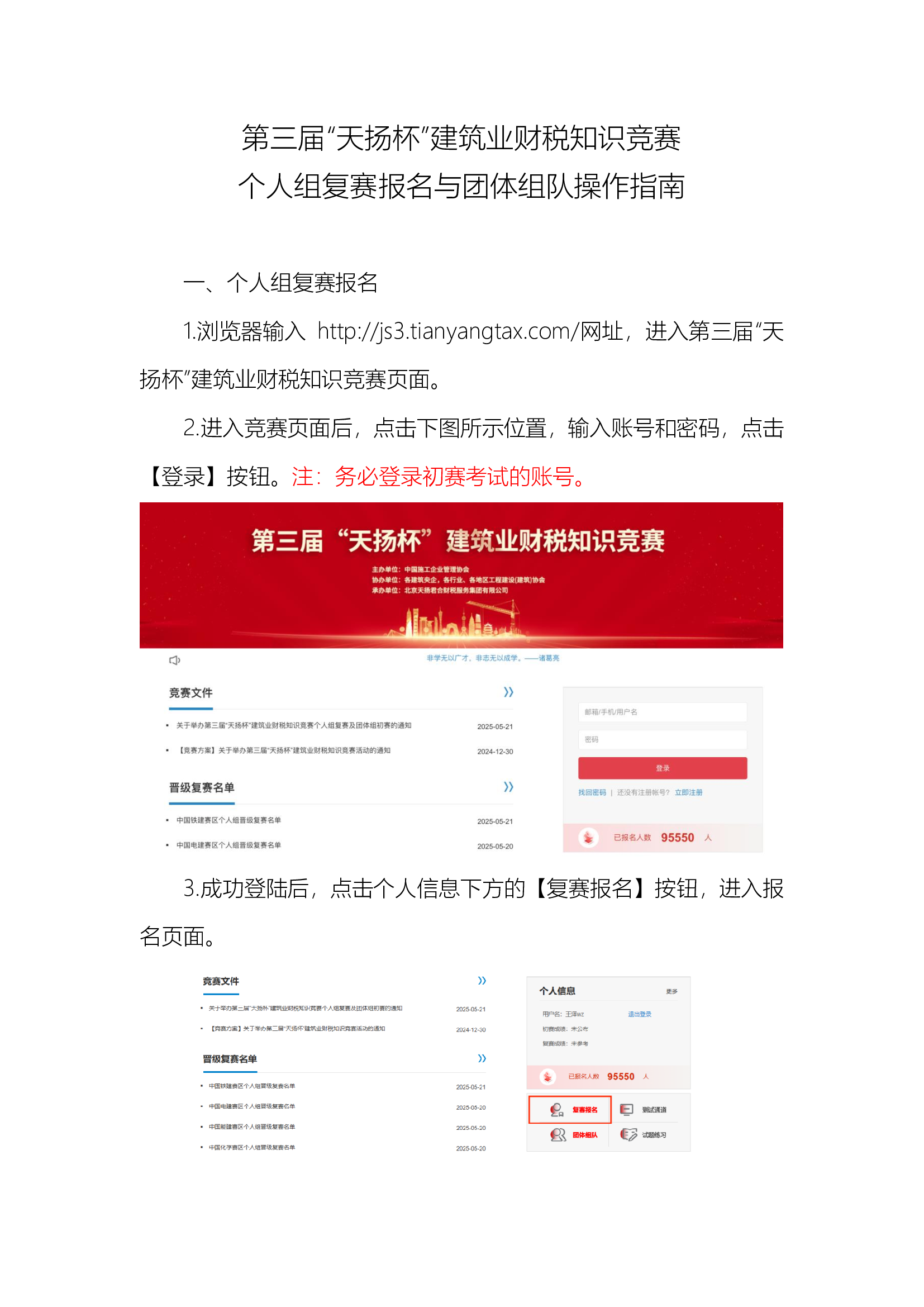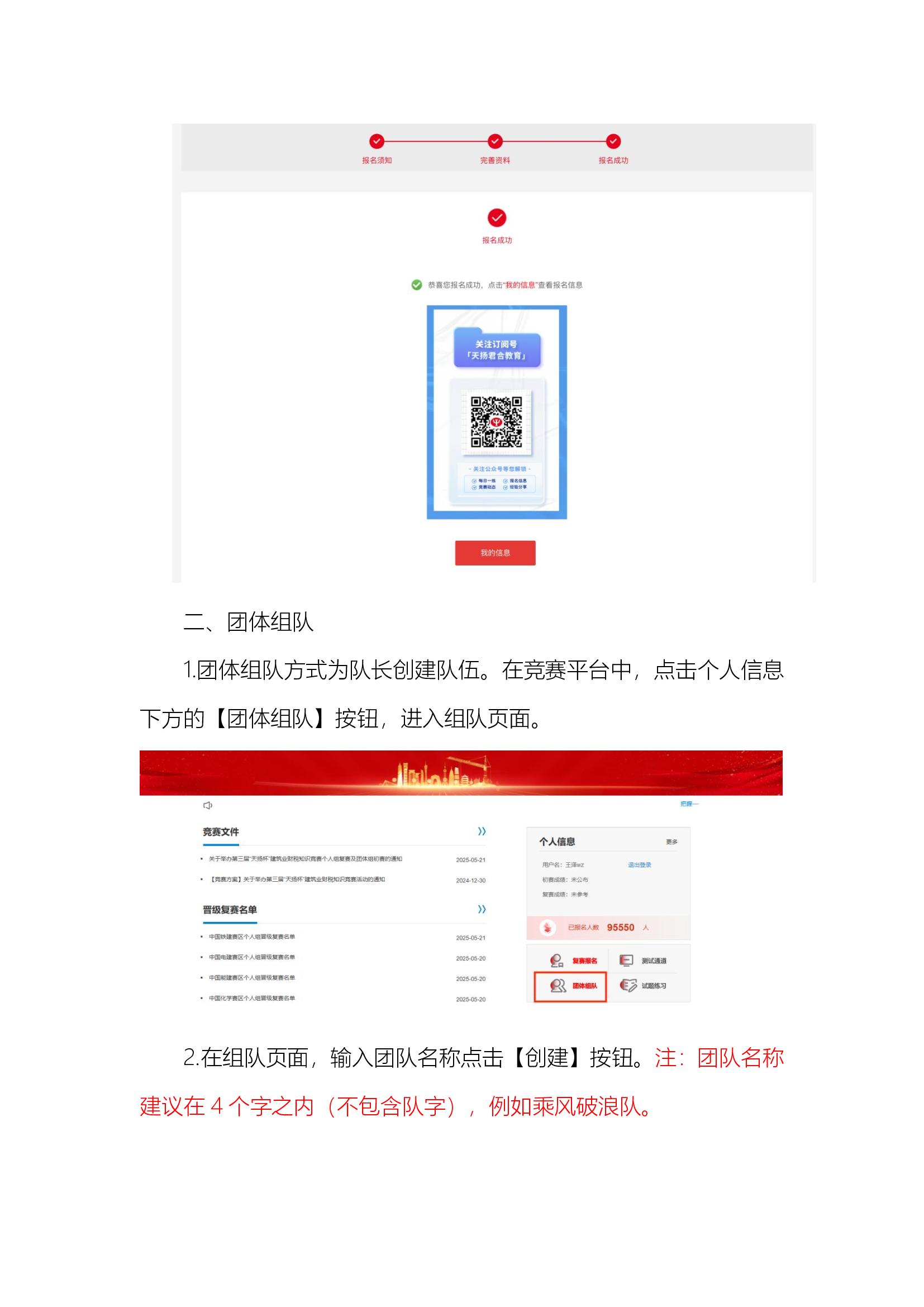 第三届天扬杯竞赛个人组复赛报名与团体组队操作指南