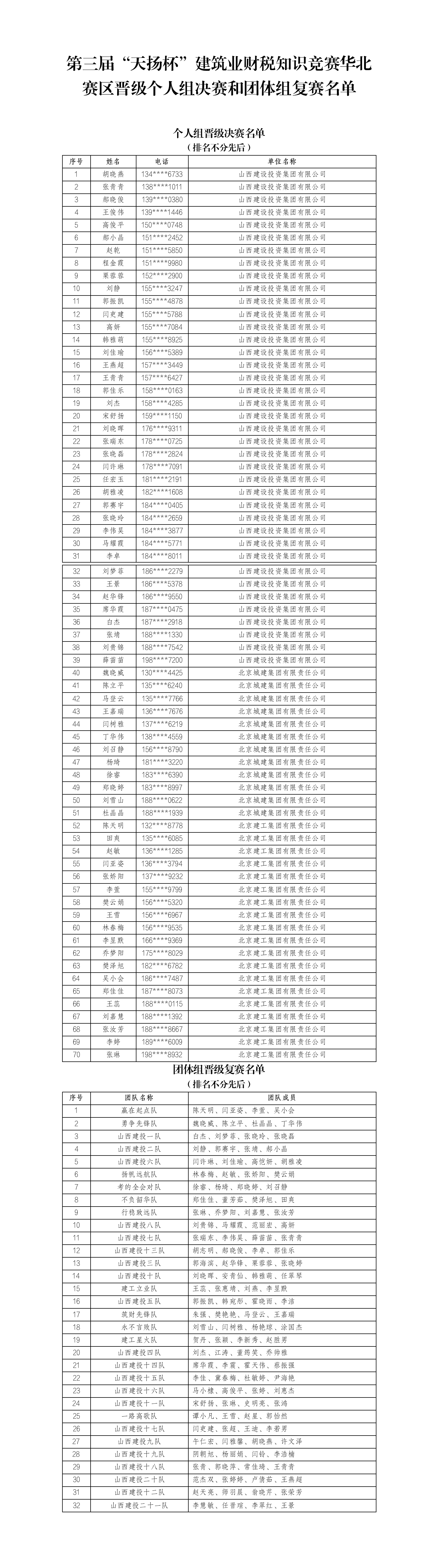 2. 第三届“天扬杯”建筑业财税知识竞赛晋级个人组决赛和团体组复赛名单