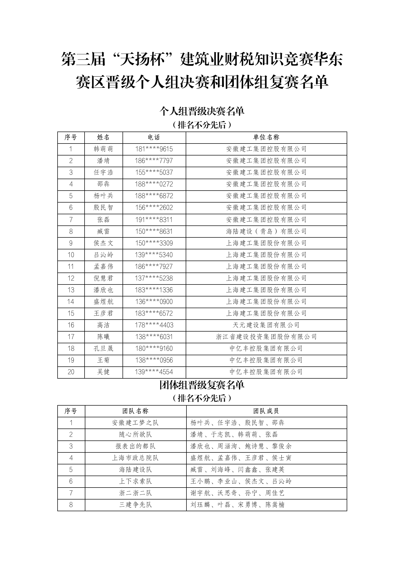 2. 第三届“天扬杯”建筑业财税知识竞赛晋级个人组决赛和团体组复赛名单