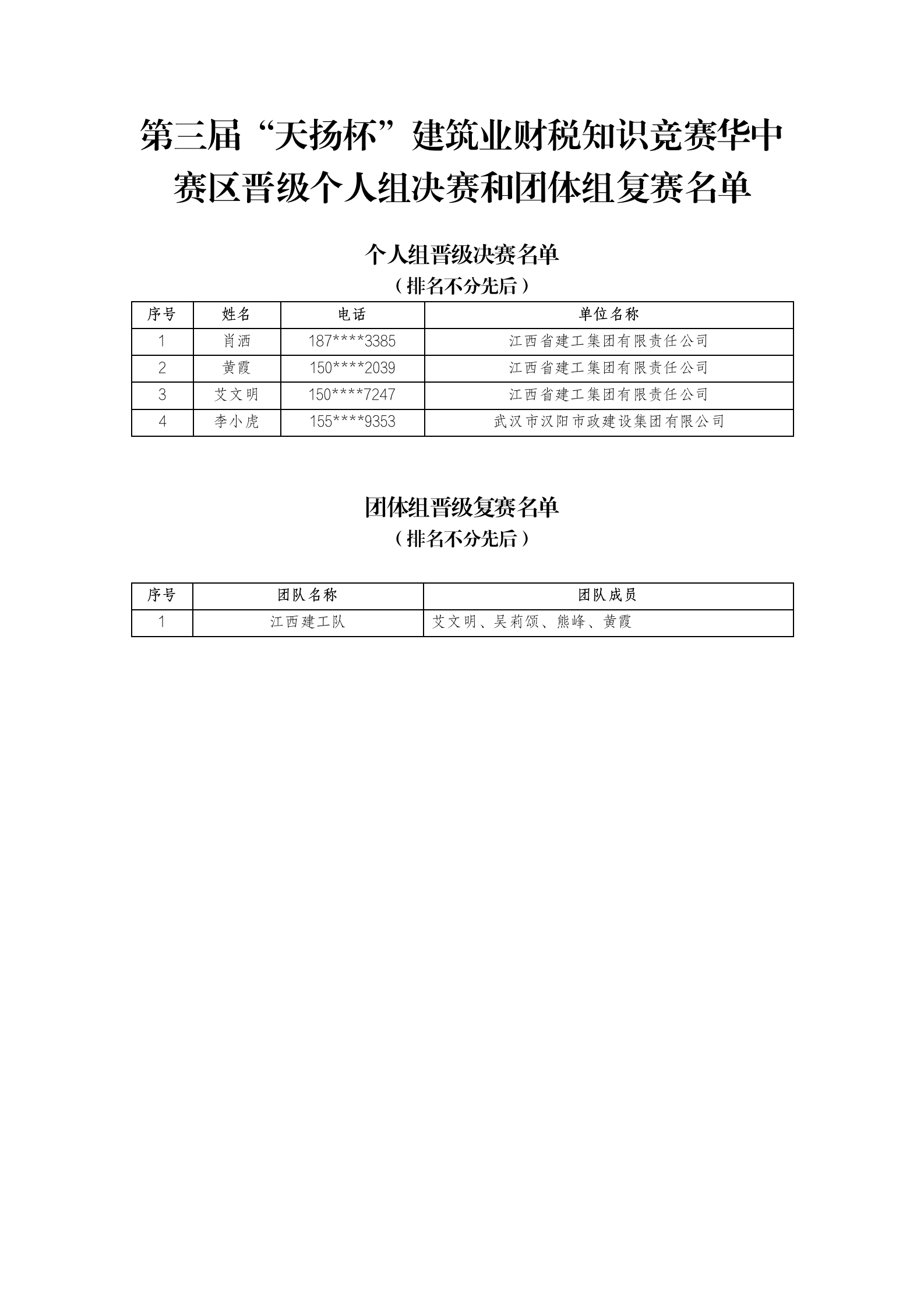 2. 第三届“天扬杯”建筑业财税知识竞赛晋级个人组决赛和团体组复赛名单