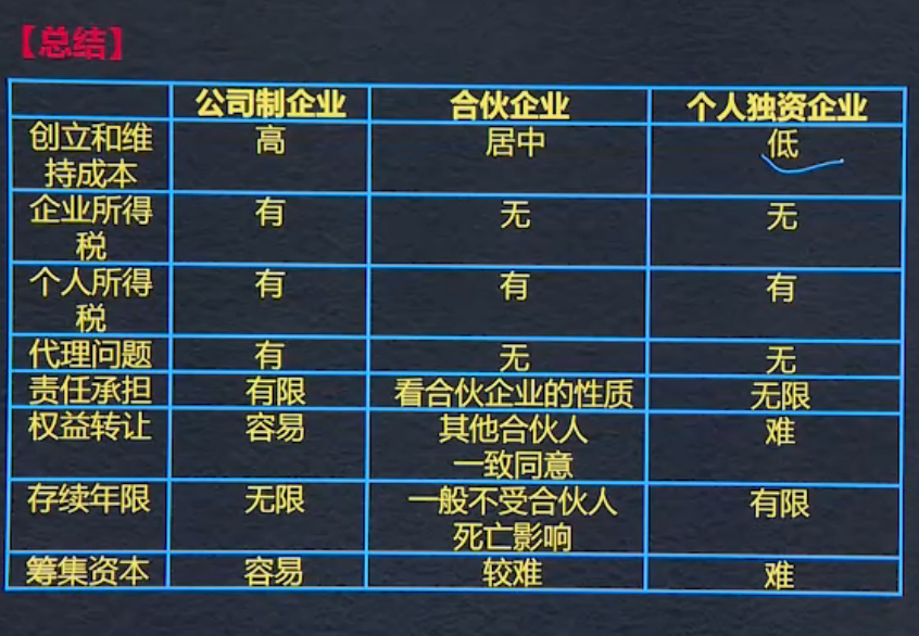 1.企业组织形式:个人独资企业,合伙企业以及公司制企业